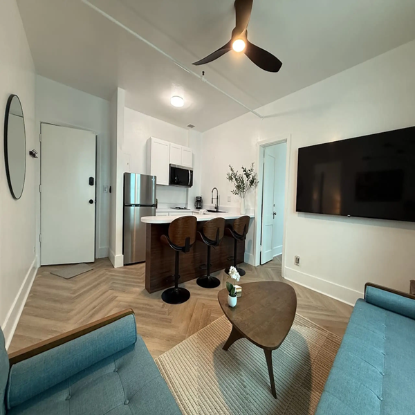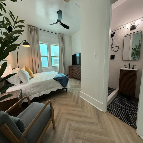 Enjoy this Mid Century Modern inspired 2 bedroom in downtown Klamath Falls. This dual master setup includes a 70″ LED TV and two 50″ LED Tv’s. Located across the new Klamath Commons Park downtown. Short walk to bars and restaurants.